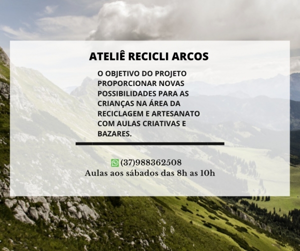 A 'Ateliê Recicli' é um projeto que será implantado na cidade de Arcos e tem como objetivo produzir arte através da reutilização de produtos, que muitas vezes vão para o lixo, causando grande impacto no meio ambiente.