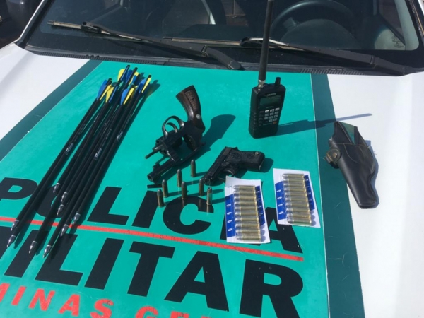 Também foi apreendido um rádio comunicador, que estava com a faixa na frequência da Polícia Militar.