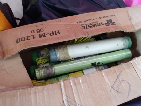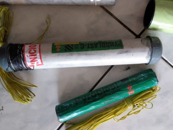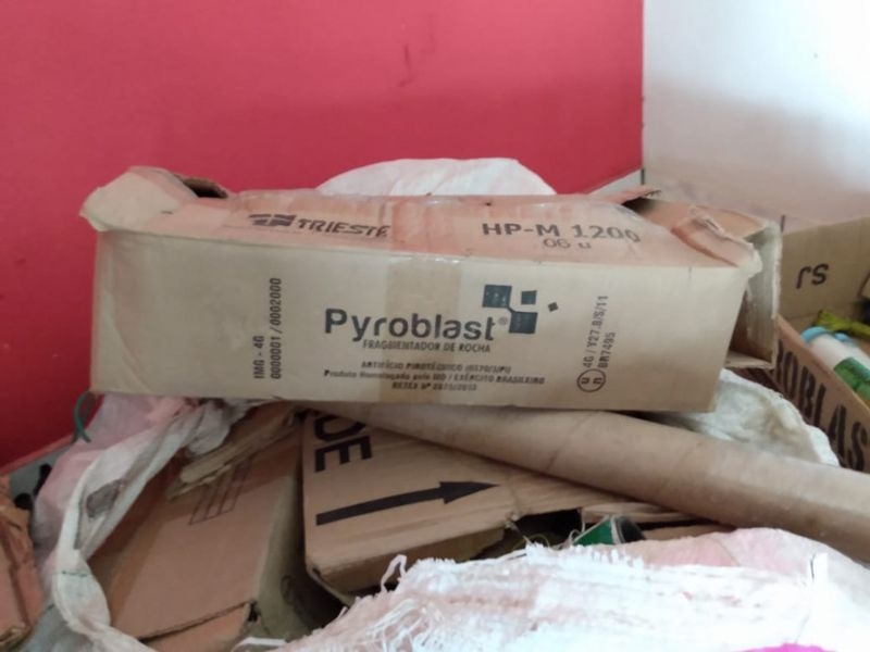 Em uma casa no Bairro Sol Nascente, foram apreendidos, um revólver 38, sem registro, munições, cerca de 68 kilos de material explosivo, além de aparelhos celulares.