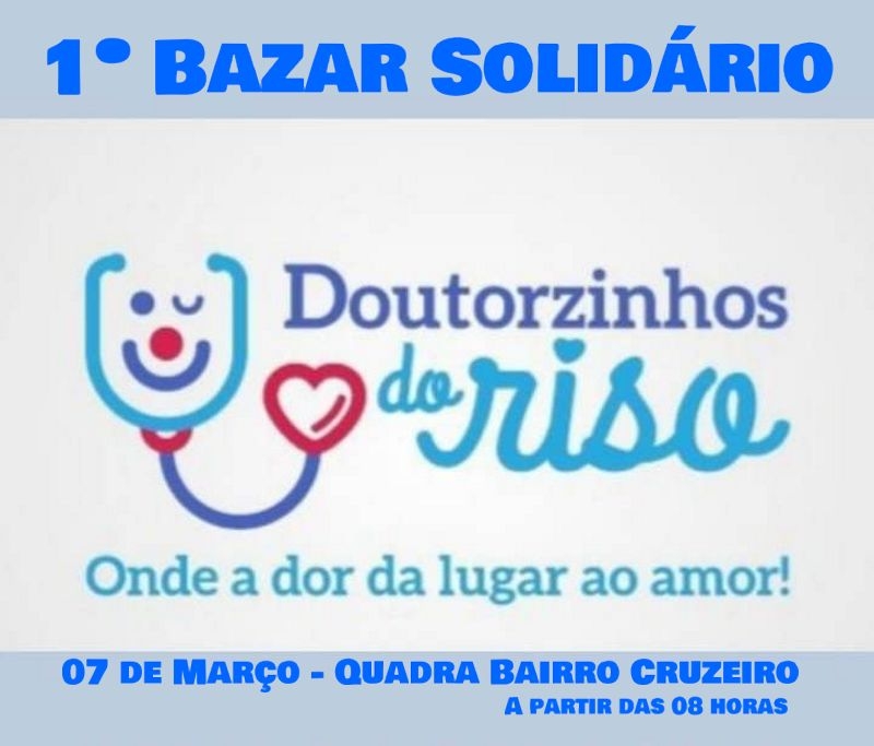 No sábado (07), na Quadra do Bairro Cruzeiro, a partir das 08 horas, acontece o 1º Bazar Solidário da Associação Mineira Doutorzinhos do Riso.