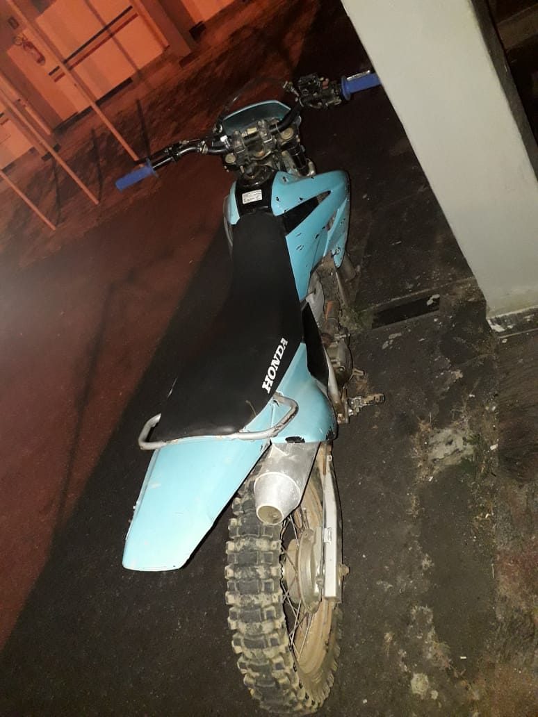 Durante a fiscalização, foi observado pelos Policiais Rodoviários que a moto transportada, além de não possuir placa de identificação, também estava com o número do chassi e número do motor adulterados / remarcados e como o condutor apresentou apenas uma cópia de uma nota fiscal de uma Honda / XR 250 Preta, que não 'batia' com as características da moto transportada, a moto foi removida para o pátio do guincho credenciado.