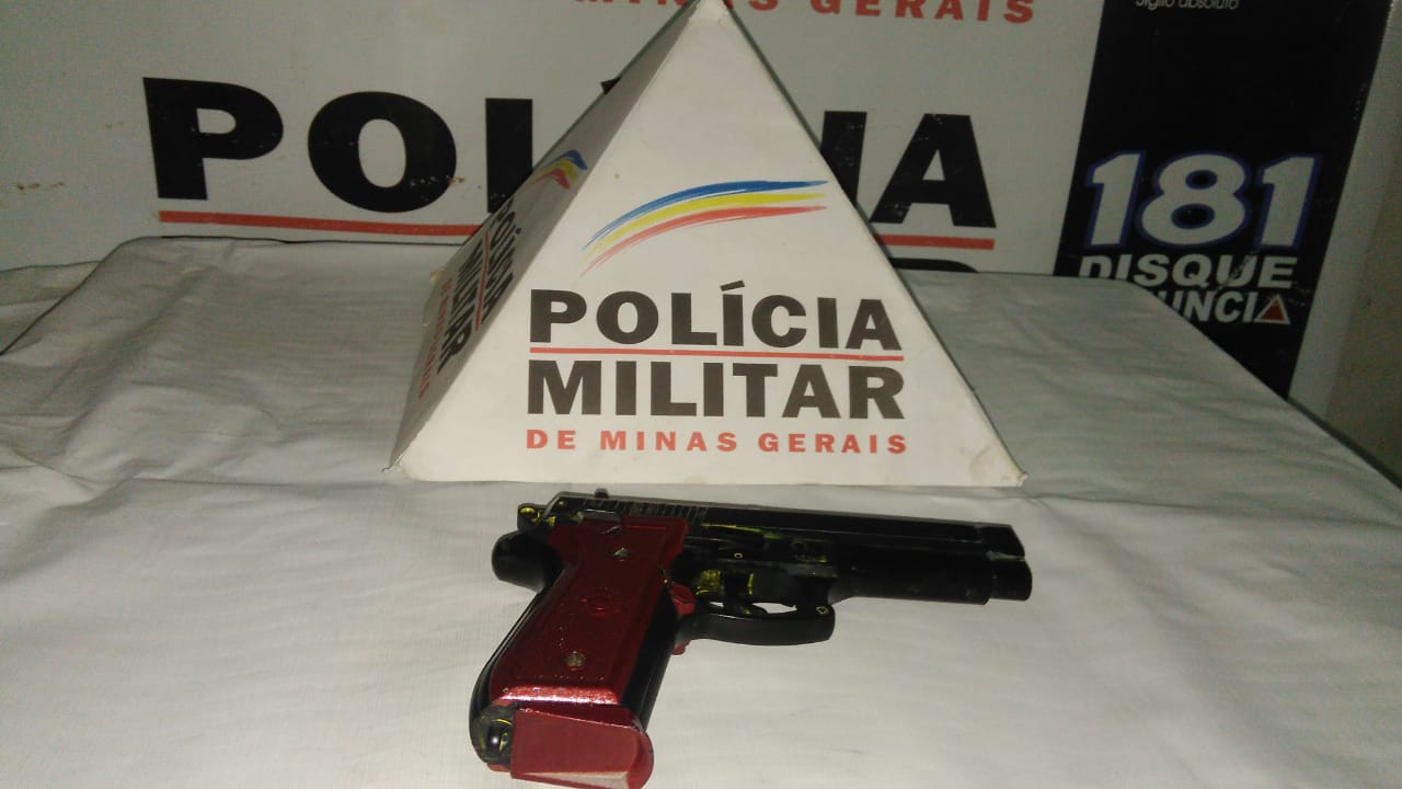 O suspeito foi abordado e com ele estava, na cintura, uma réplica de arma de fogo. O autor tinha sinais de embriaguez e não soube explicar por que portava o objeto.