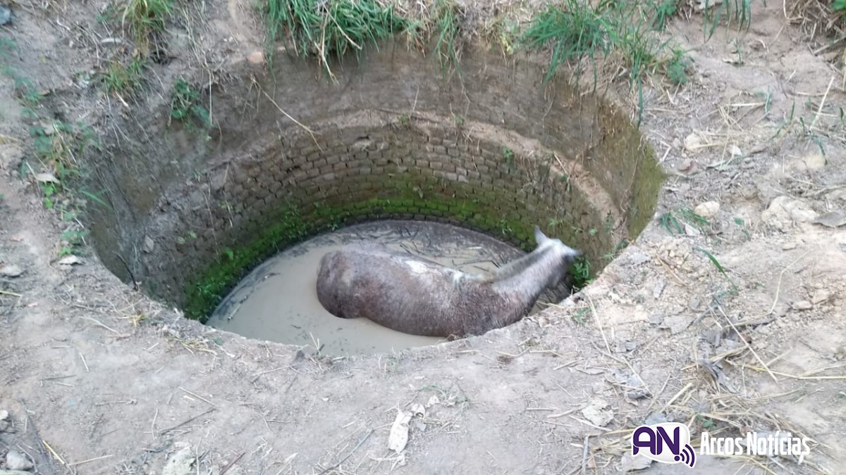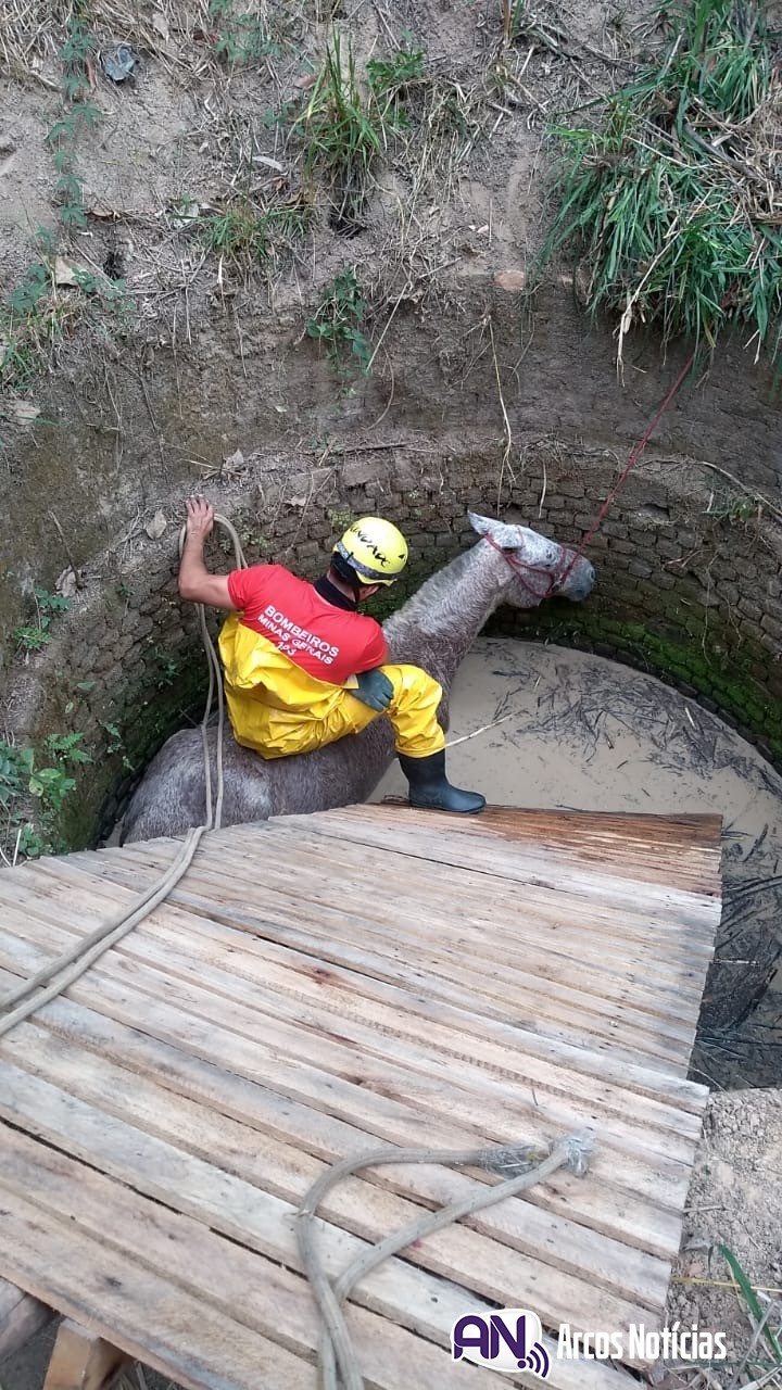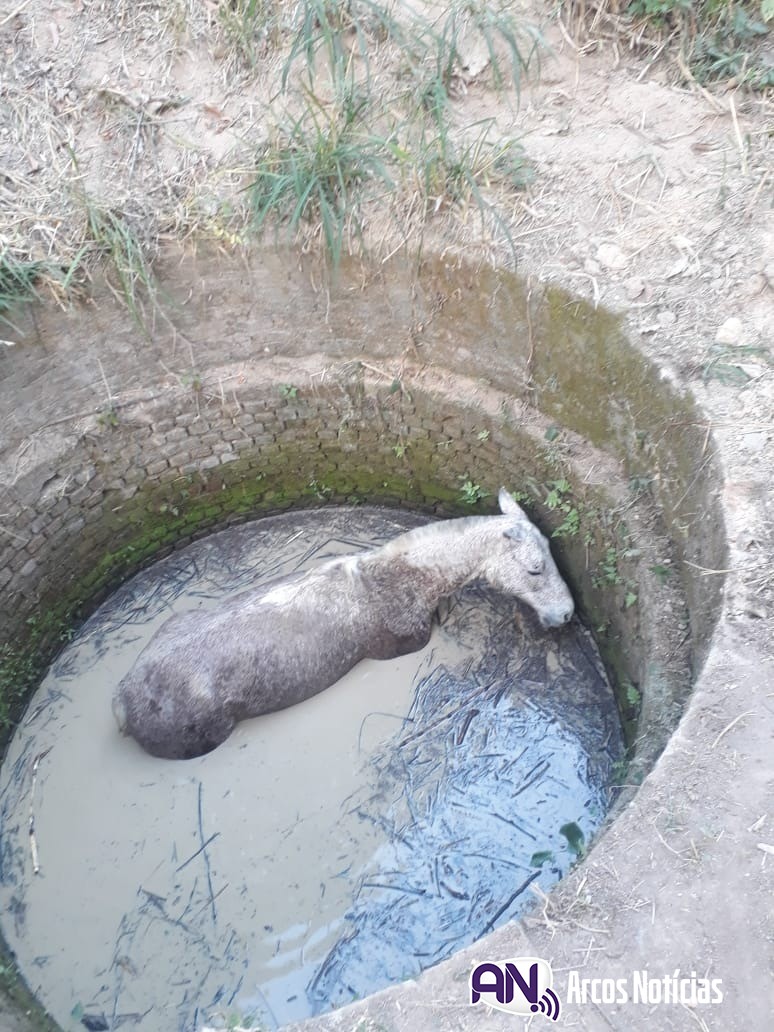 Um cavalo foi resgatado pelo Corpo de Bombeiros na tarde dessa segunda-feira (10) depois de cair dentro de uma cisterna desativada, no Bairro Santo Antônio, em Arcos. A ocorrência foi registrada por volta das 15h.