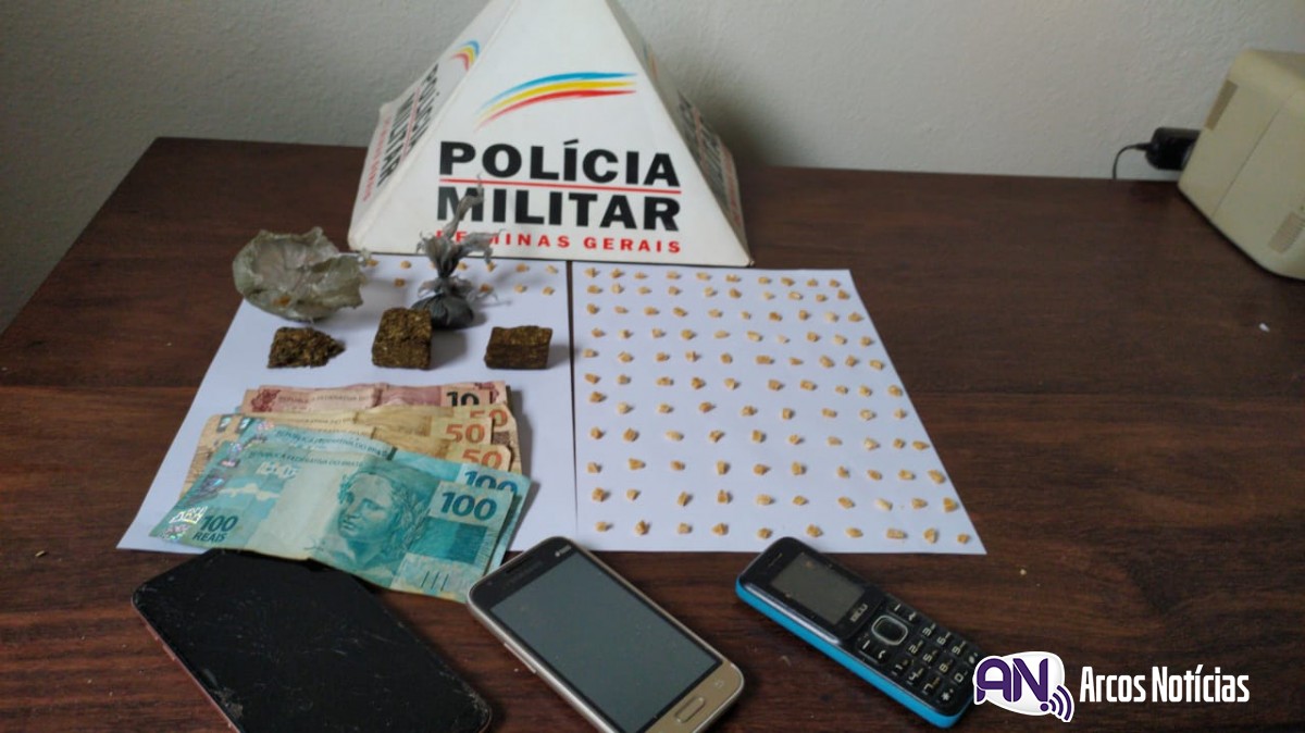 06 tabletes, 05 buchas e 06 cigarros de maconha;