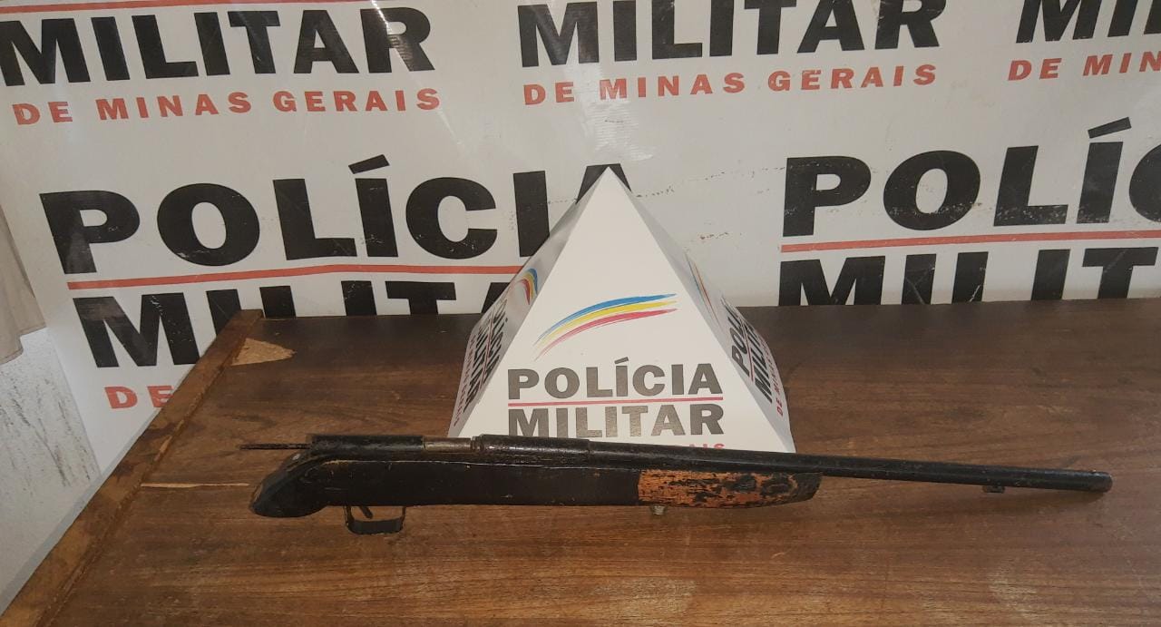 Ainda no sábado (11), por volta das 09 horas, a PM compareceu ao residencial Hilda Borges de Andrade, onde uma mulher de 21 anos relatou que sofria agressões constantes do companheiro e que decidiu acionar a polícia por causa de uma espingarda que ele possuía, entregando a arma aos militares. O cidadão fugiu do local antes da chegada da viatura.