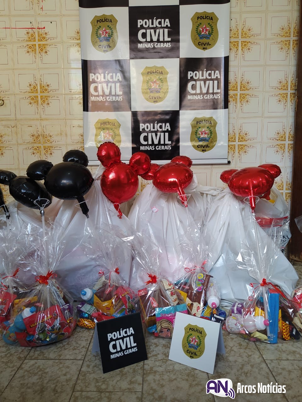 Em parceria com várias empresas e pessoas da sociedade, a Delegacia de Polícia Civil de Arcos, desenvolveu o Projeto Natal Solidário 2020 que arrecadou cestas de natal, brinquedos e guloseimas.