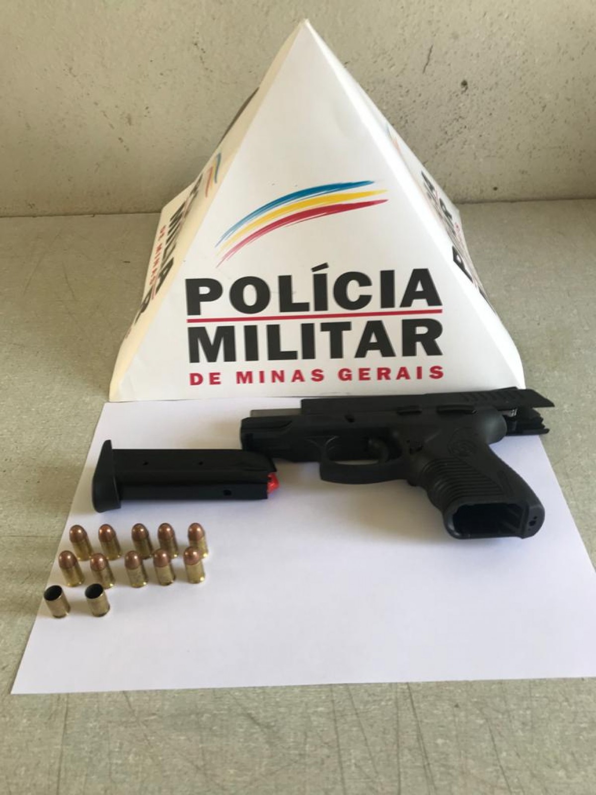 Uma pistola semi-automática, calibre 380, e 12 munições (10 intactas e 02 deflagradas) foram apreendidas por uma equipe de militares durante abordagem a um automóvel VW Gol, na manhã desta segunda (15), na BR-354, altura do bairro Esplanada, em Arcos.