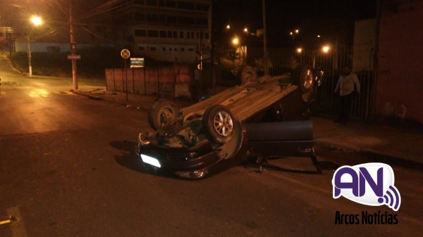 Um veículo VW Gol colidiu com uma placa de sinalização e depois capotou entre a Avenida Dr João Vaz Sobrinho, trecho 1 e a Rua São Geraldo.