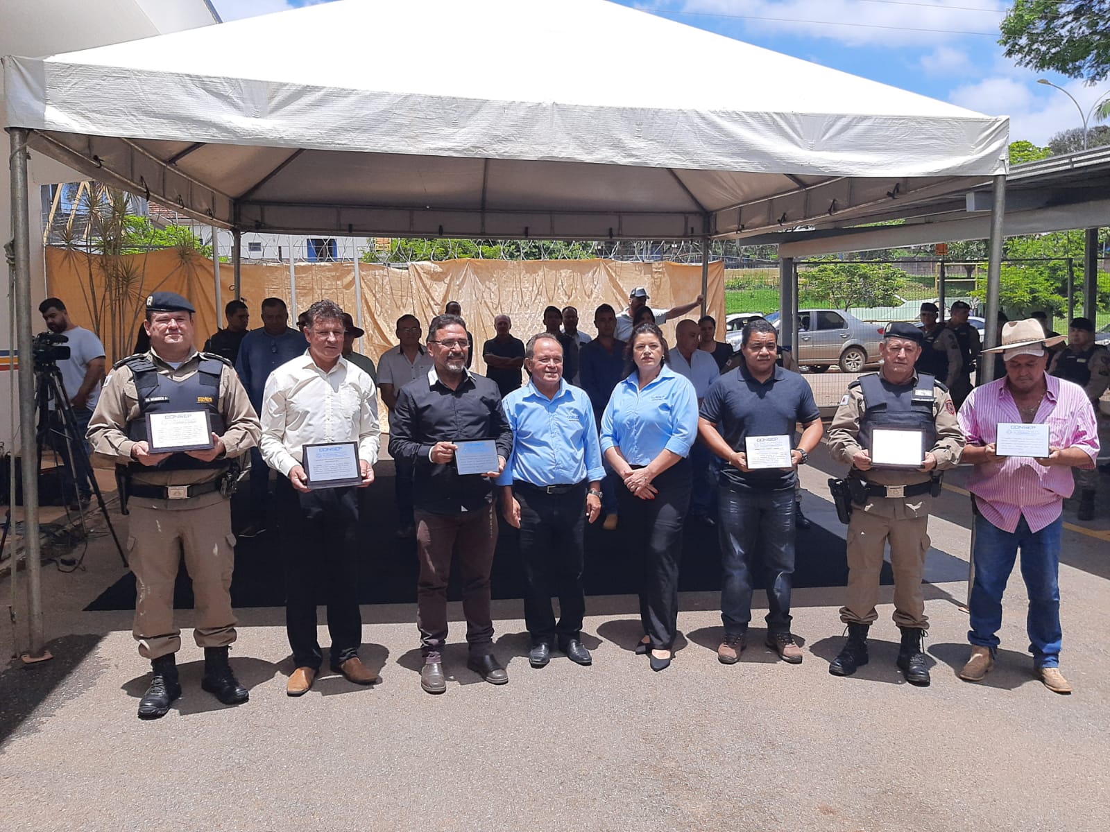 Como forma de agradecimento ao trabalho e esforço conjunto de autoridades e da sociedade civil organizada, o CONSEP de Bambuí entregou placa de agradecimento ao Coronel Wemerson, ao 2° Ten Camilo, ao Prefeito de Bambuí, entre outras autoridades que apoiaram no projeto.
