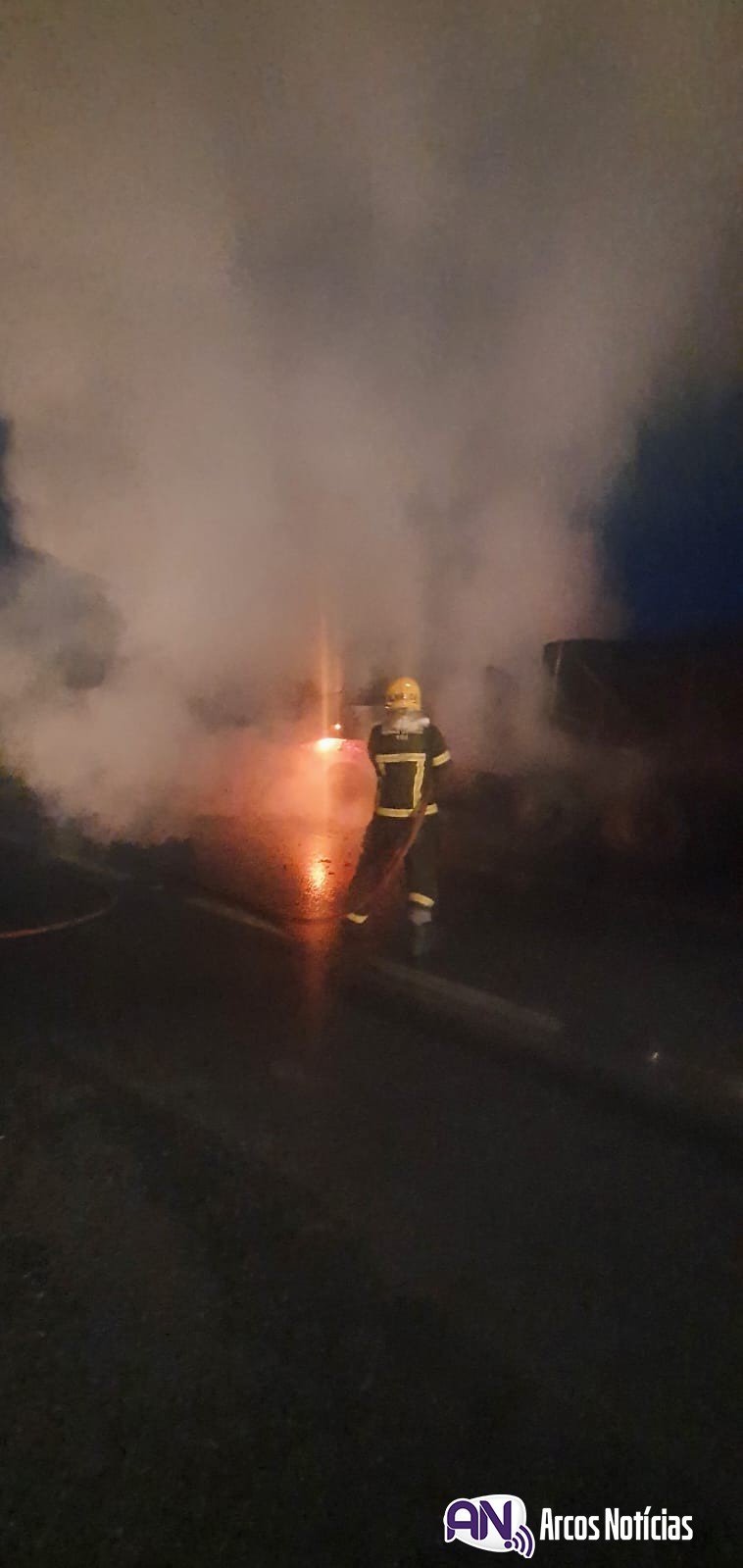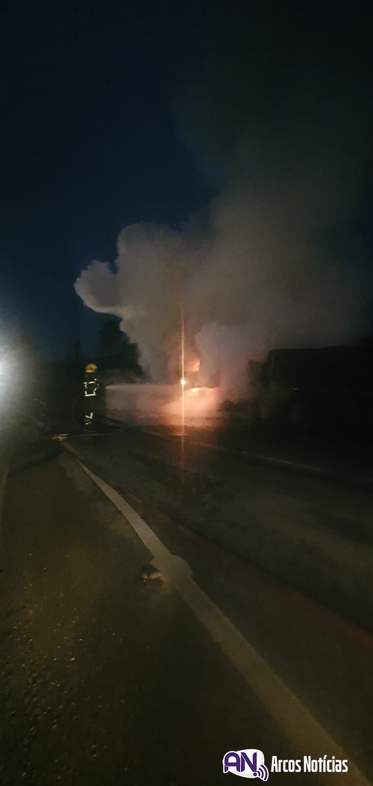 De acordo com o Corpo de Bombeiros, o veículo seguia no sentido Arcos/Campo Belo, quando o condutor sentiu o cheiro de queimado e estacionou a carreta às margens da rodovia.