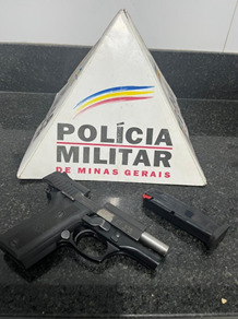 Após vistoria pelo automóvel foi encontrado uma pistola Taurus, cal. 380, com a numeração raspada, e seu respectivo carregador vazio.