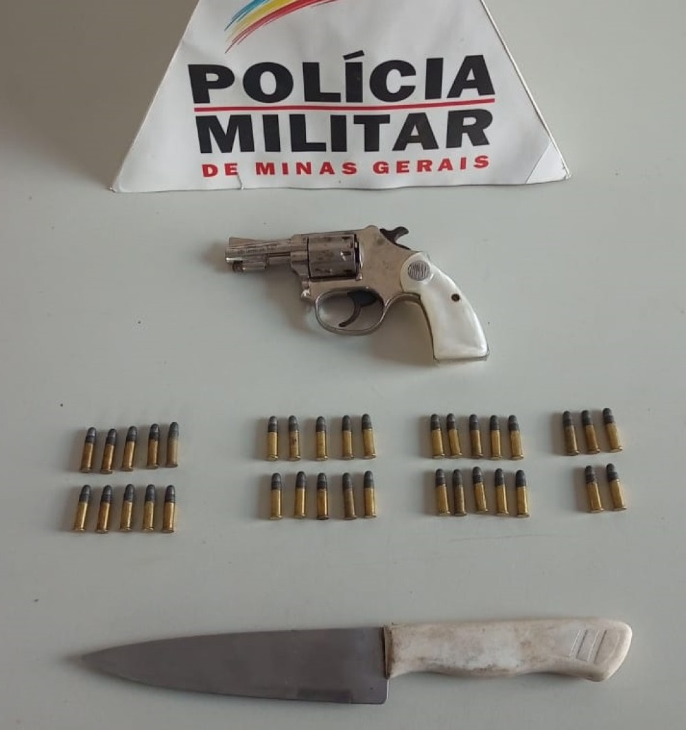Diligenciado pelos policiais militares, foram à Rua Agostinho Teles de Castro, vila José Branco, onde o suspeito de 39 anos de idade, alvo das denúncias de ameaças contra a ex-esposa, foi localizado, após efetuaram buscas, os militares apreenderam um revólver cal .22 marcas Rossi e 35 (trinta e cinco) munições intactas e uma faca.