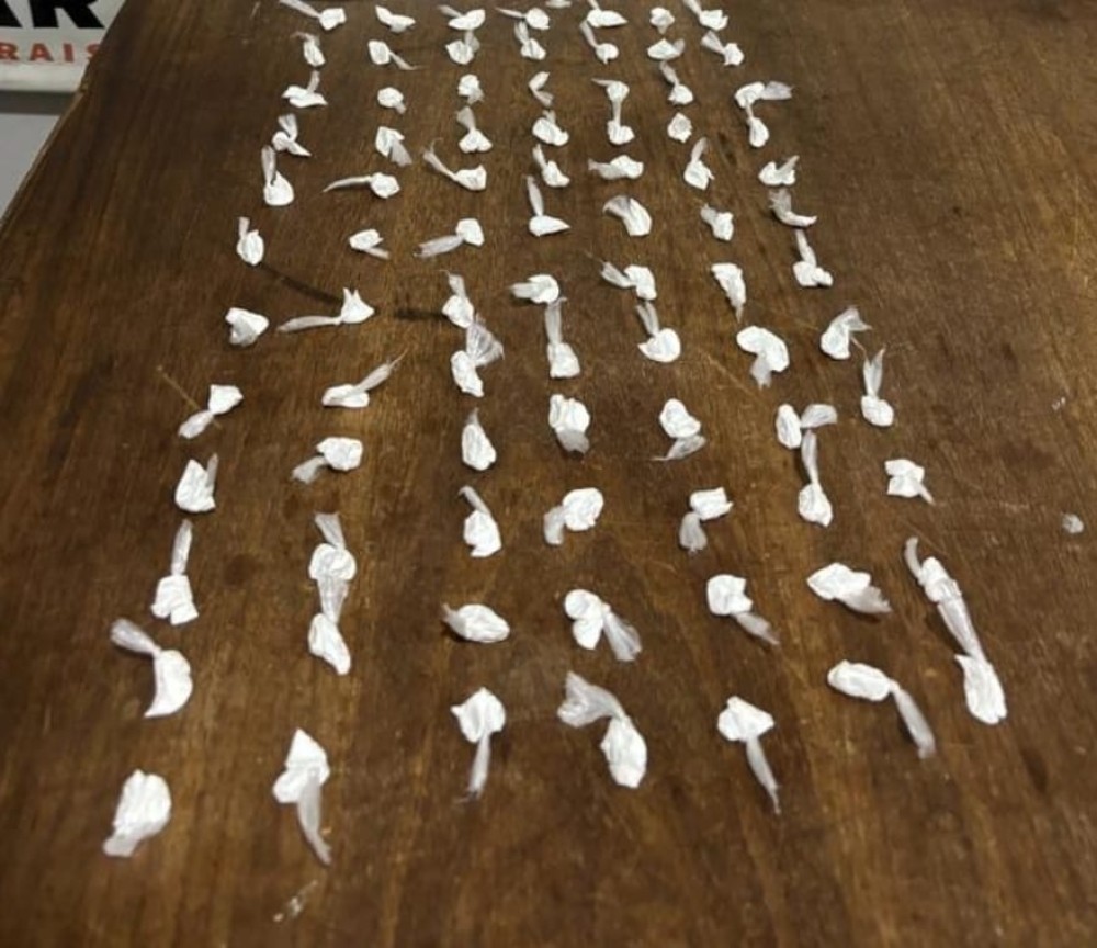 Inicialmente foram encontrados com eles um pino e dez papelotes de cocaína. Os suspeitos afirmaram ter adquirido a droga na capital mineira com o propósito de comercializar o produto oportunamente. No desenvolvimento da ocorrência, mais drogas foram localizadas e apreendidas, totalizando a expressiva quantidade de 84 papelotes e um pino de cocaína.