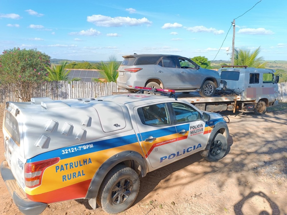 Durante o rastreamento na zona rural entre as cidades de Luz e Moema, os militares da Patrulha Rural depararam com o veículo Toyota/Hilux roubado, o qual era escoltado por um veículo Fiat/Pálio Weekend de cor preta, tendo dois suspeitos abandonado a Toyota/Hilux e evadido embrenhado em uma mata.