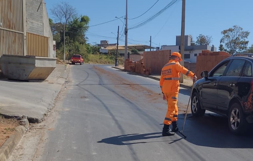 De acordo com os bombeiros, ao chegarem ao local, os militares encontraram um derramamento de óleo de cerca de 20 metros na via pública em declive, o que ocasionava risco de derrapagem e queda de veículos e pedestres que transitavam pelo local.