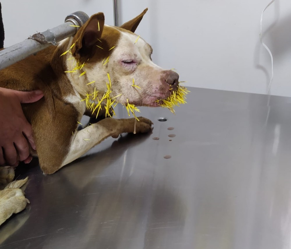 De acordo com os militares, por volta das 20h30, os bombeiros atenderam a um chamado para socorrer uma cadela que havia ficado gravemente ferida após um encontro infeliz com um ouriço-cacheiro.