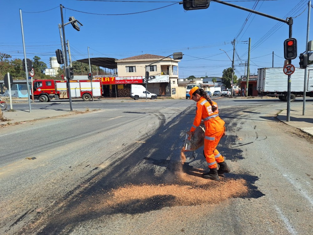 Reconhecendo o risco imediato de acidentes, os militares rapidamente tomaram as providências necessárias, espalhando serragem no local para neutralizar a mancha de óleo. A medida foi essencial para reduzir a possibilidade de derrapagens e colisões, garantindo a segurança dos motoristas e pedestres que transitam pela área.
