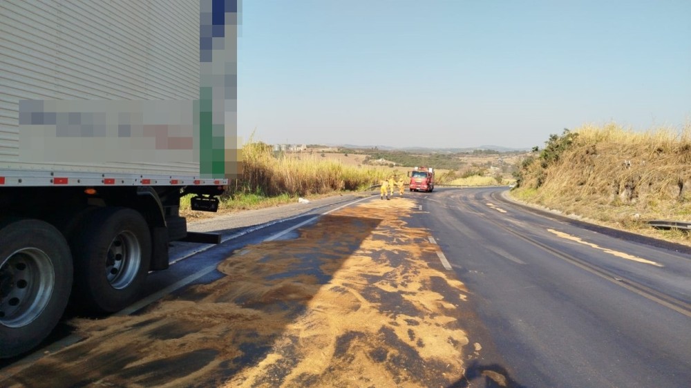 Na tarde desta segunda-feira (19/8), o Corpo de Bombeiros foi acionado para conter o risco de derrapagem no trevo de Formiga, situado na Rodovia BR 354.