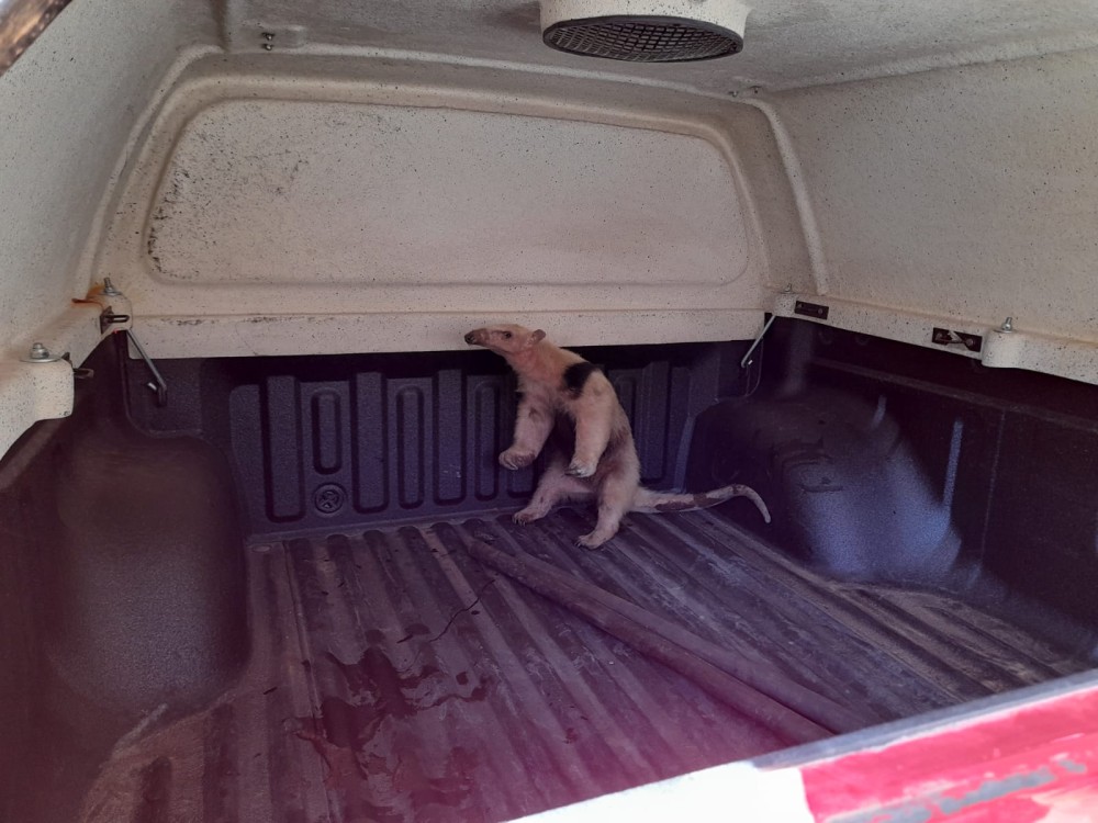 Os bombeiros fizeram a captura do tamanduá-mirim, que estava em boas condições de saúde.