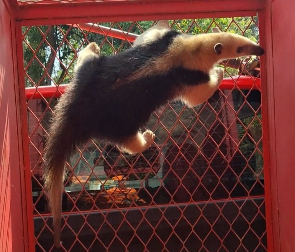 De acordo com os bombeiros, ao chegarem ao local, encontraram o animal acuado, aparentemente desorientado, sem conseguir deixar a garagem. Utilizando técnicas especializadas de captura de fauna silvestre, a equipe conseguiu resgatar o tamanduá de forma segura, preservando tanto o animal quanto os moradores da residência.