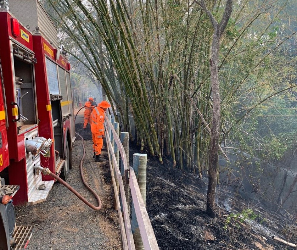 Na tarde de ontem (27/9), o Corpo de Bombeiros Militar de Arcos foi acionado para combater um incêndio em uma área de vegetação dentro do Parque Aquático Municipal.