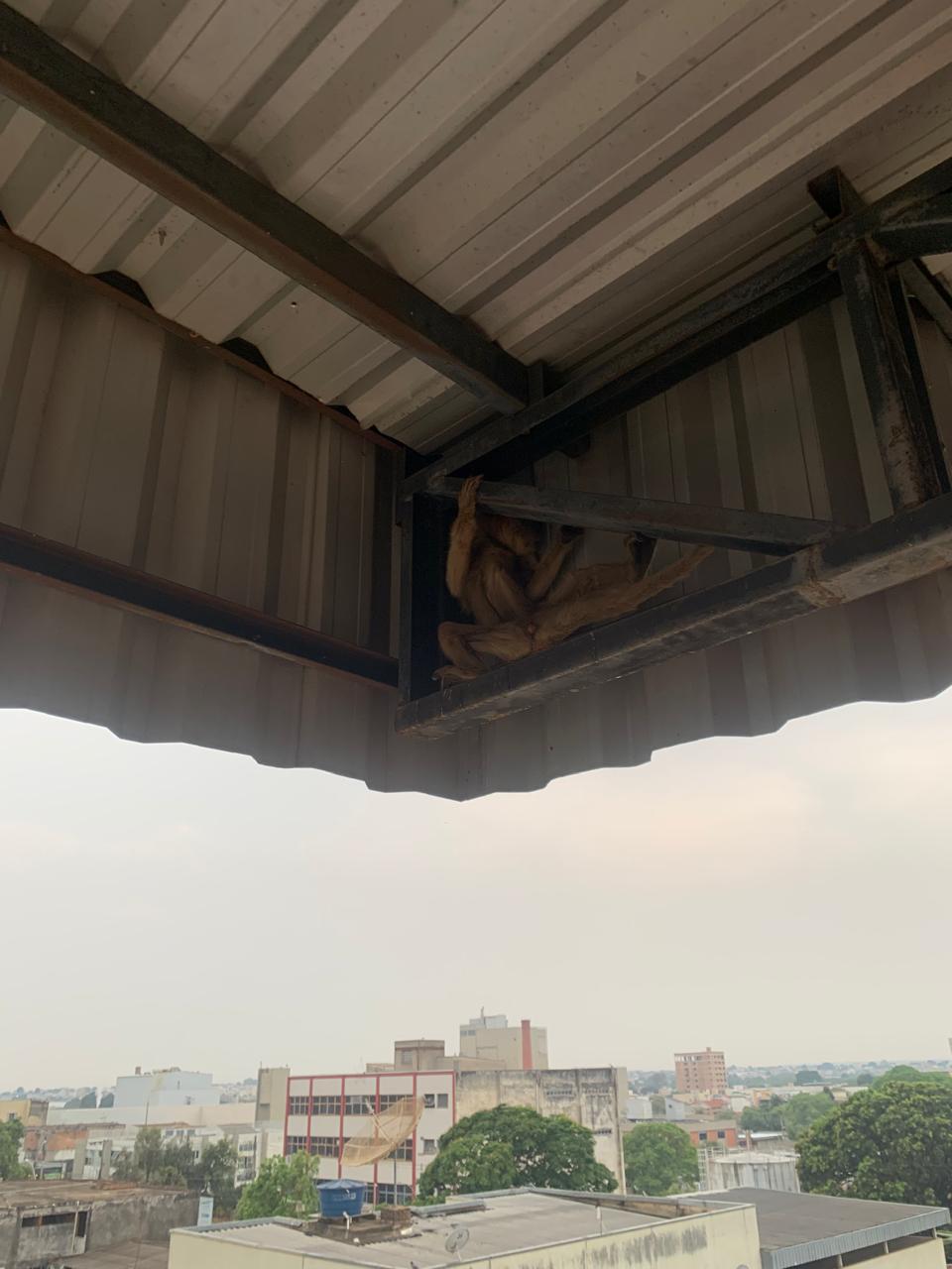 O fato ocorreu na Rua Ângelo Perilo, no Centro de Lagoa da Prata/MG, envolvendo um macaco bugio que estava acuado no terraço de um prédio de quatro andares.