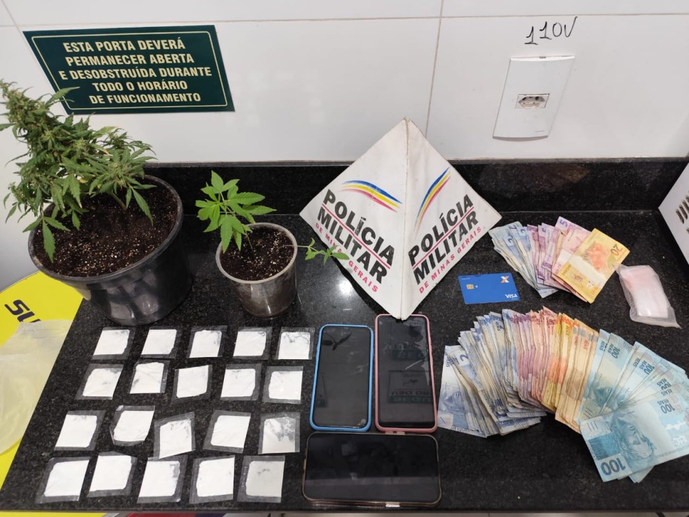 As drogas, dinheiro e demais materiais foram apreendidos e entregues na Delegacia de Polícia.