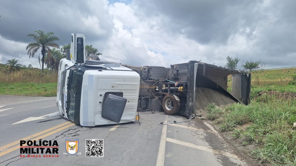 Segundo informações da Polícia Militar Rodoviária (PMRv), um caminhão da marca M.Benz estava realizando uma manobra na alça do trevo para acessar a BR-354, rumo a Arcos, quando sua carga puxou para a esquerda, resultando no tombamento do veículo.