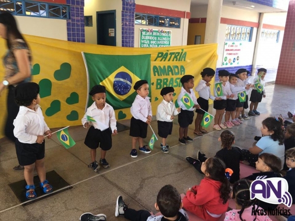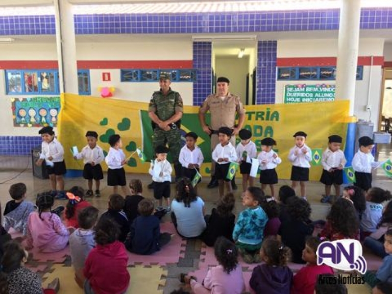 Na manhã desta segunda (26), alunos da creche Pablo Victor de Souza Lima, no bairro Santa Efigênia, prestaram uma singela homenagem à Polícia Militar por ocasião do ‘Dia do Soldado’.