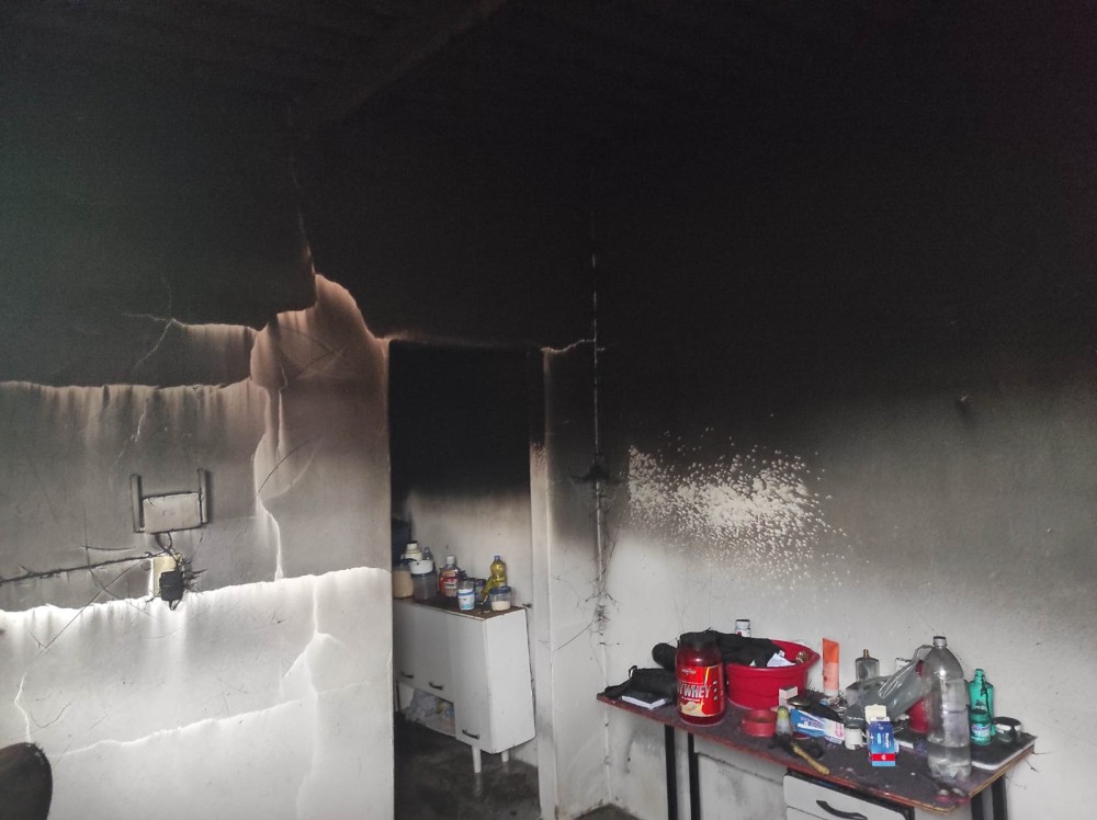 Segundo relato da moradora, o fogo pode ter sido provocado por uma vela acesa deixada sobre a geladeira.