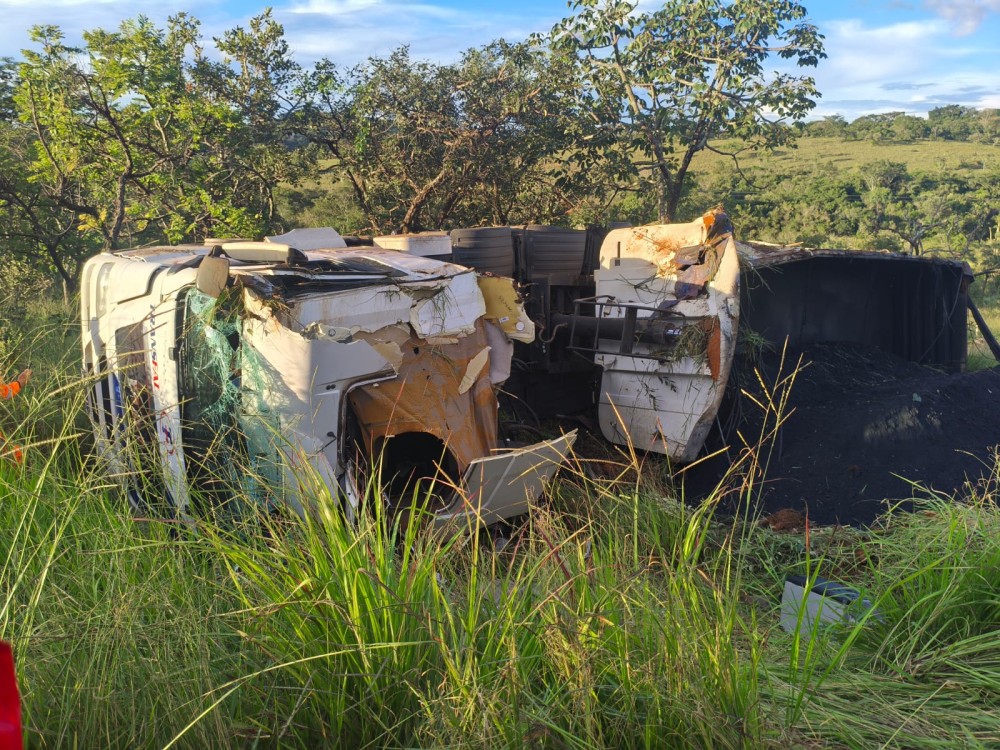 De acordo com o informe de atendimento, os socorristas foram chamados para atender o acidente envolvendo o motorista do caminhão que havia tombado com o veículo. Ao chegarem ao local, encontraram a vítima consciente, porém com lesões.