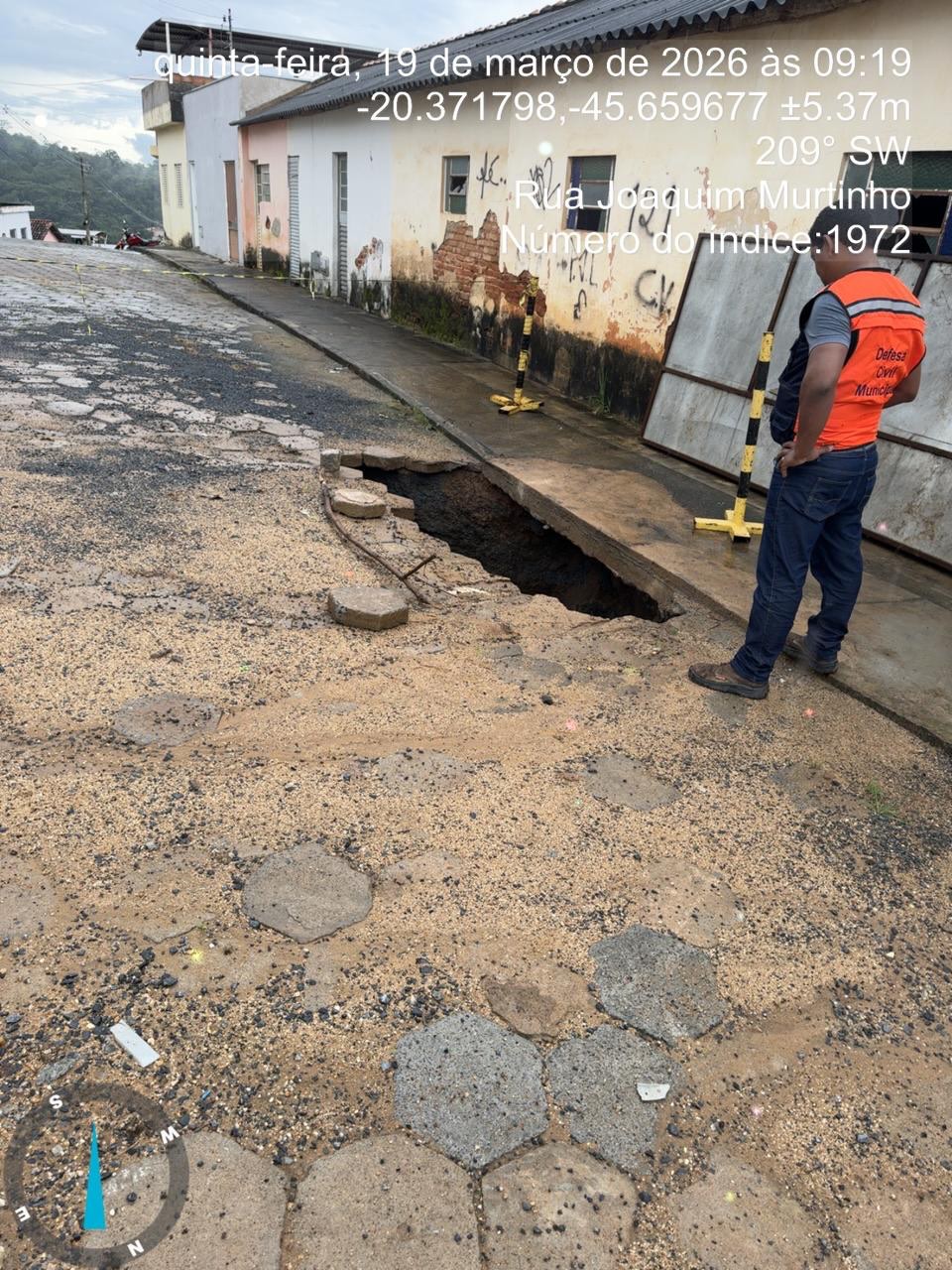 A Prefeitura de Pains, em conjunto com a Defesa Civil, vem demonstrando atuação rápida e responsável diante de problemas de solo identificado na Rua Joaquim Murtinho, após as chuvas da tarde de sexta-feira (20/03), no município. Desde a constatação do problema, o município mobilizou esforços para garantir a segurança da população e buscar uma solução técnica adequada para o caso.