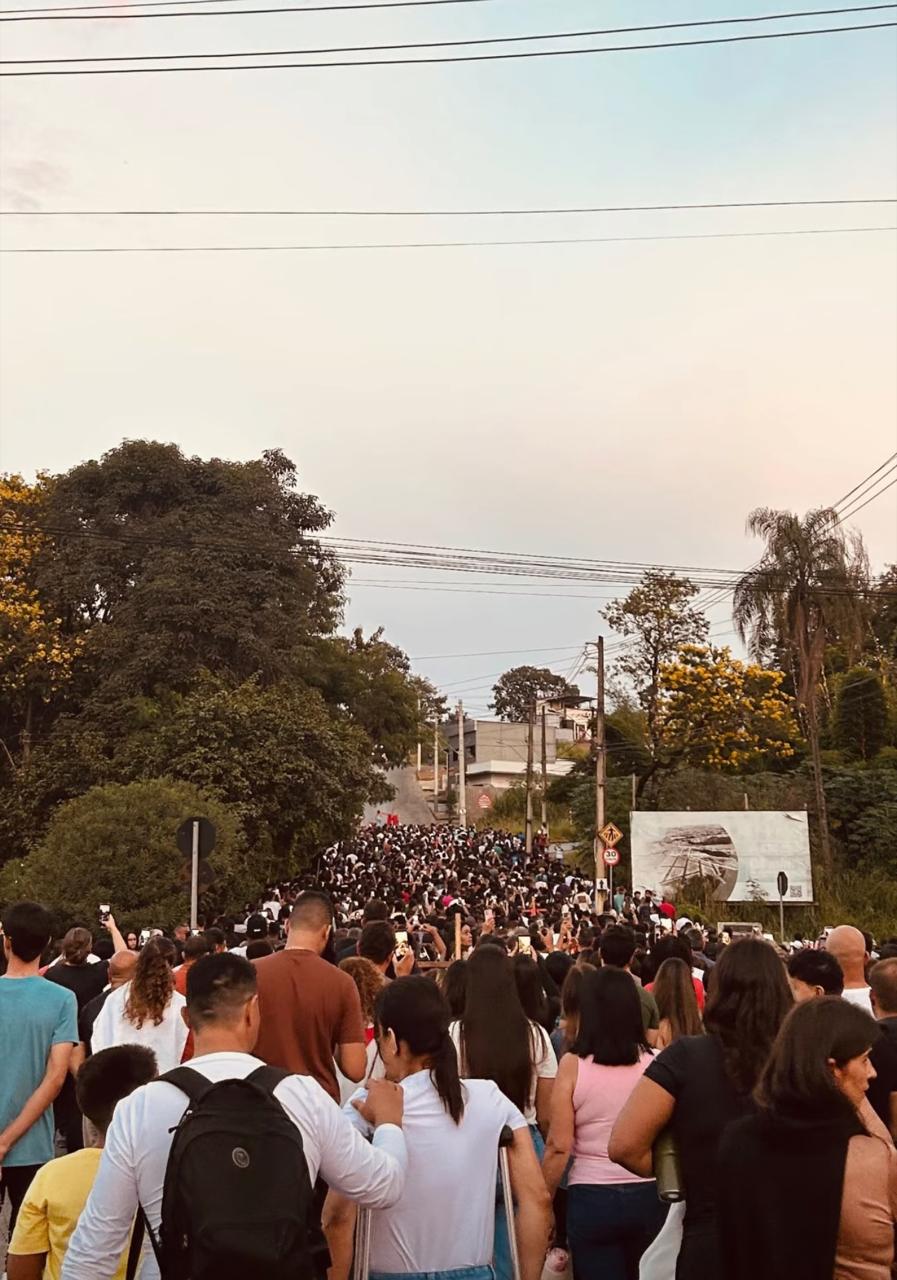 Durante o trajeto, cruzes menores foram passadas de mão em mão, proporcionando a cada fiel a oportunidade de vivenciar, de forma simbólica e profunda, o significado da Paixão de Cristo.