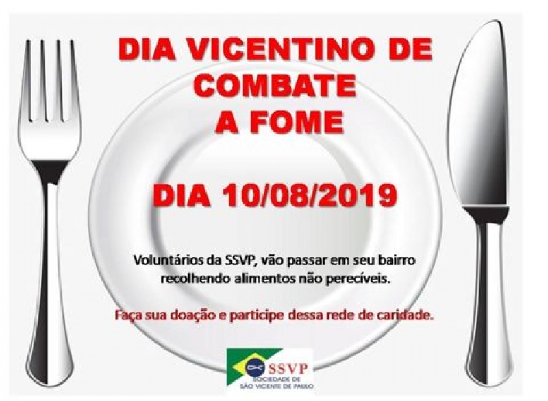 Voluntários da Sociedade São Vicente de Paulo estarão nos bairros recolhendo alimentos
