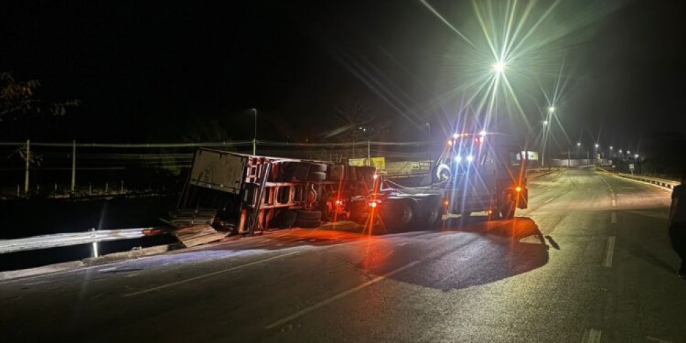 Caminhão tomba após falhas mecânicas e motorista fica ferido em Itapecerica