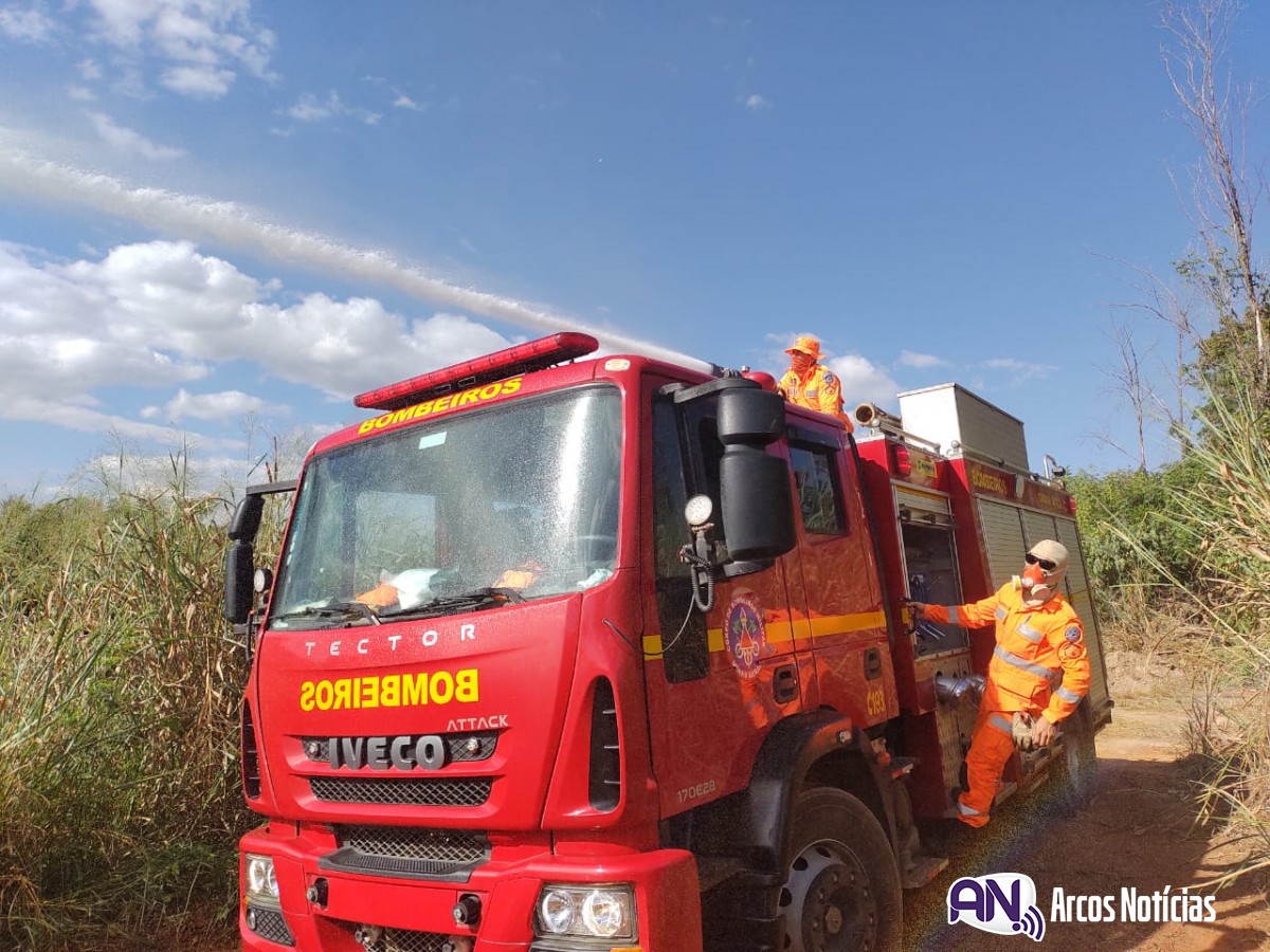 Na tarde desta quinta-feira (06), por volta de 12h45, militares do Corpo de Bombeiros do Posto Avançado de Arcos foram acionados para combater um incêndio em uma área de reflorestamento, no Bairro São Judas Tadeu.