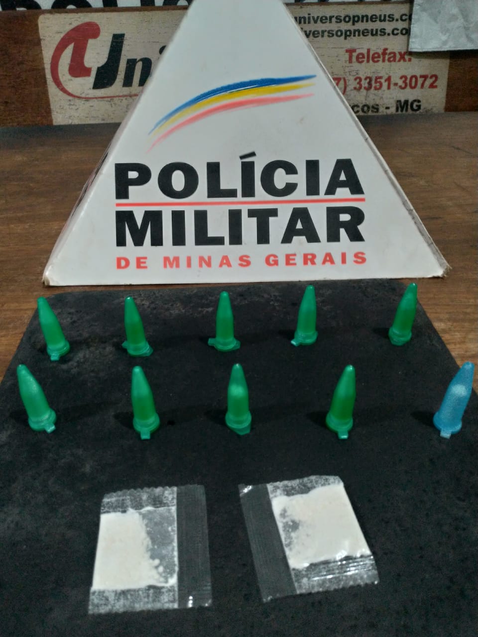 Na noite de quinta-feira (06), um homem de 19 anos foi preso pela Polícia Militar, no bairro Esplanada, por tráfico de drogas. Ele foi alvo de denúncias e quando percebeu a aproximação da viatura, tentou fugir, lançando antes, ao solo, um embrulho plástico contendo 10 pinos de cocaína.