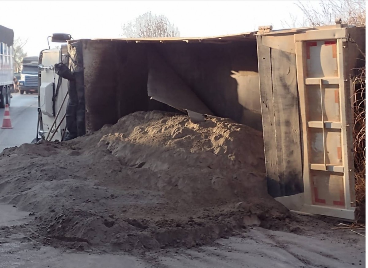 O motorista de 32 anos não se feriu. A a carga de calcário transportada foi lançada na rodovia e o trânsito ficou lento no local.