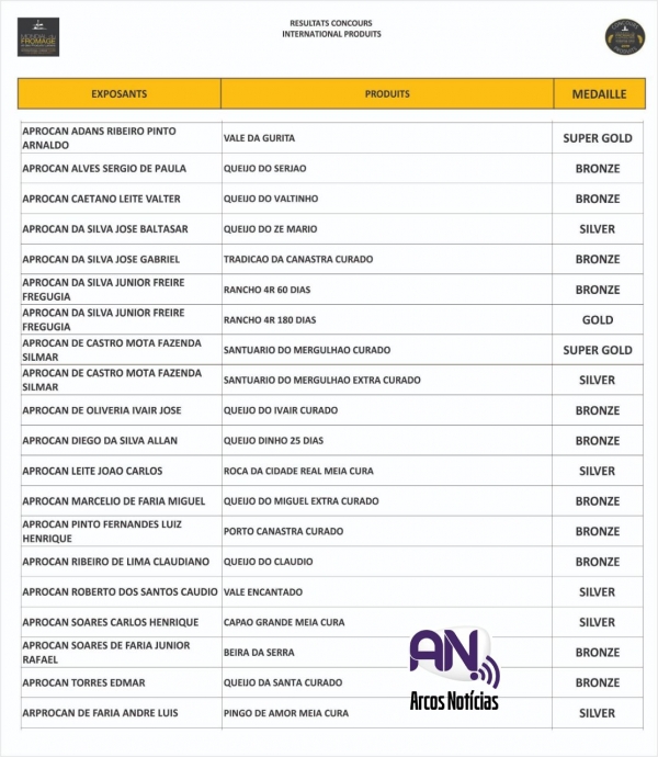 O "Queijo do Ivair" e o "Santuário do Mergulhão", com o queijo curado, conquistaram medalhas na categoria Superouro. A "Rancho 4R", de São Roque de Minas, e o "Mineirinho", de Araxá, conquistaram medalhas na categoria ouro.