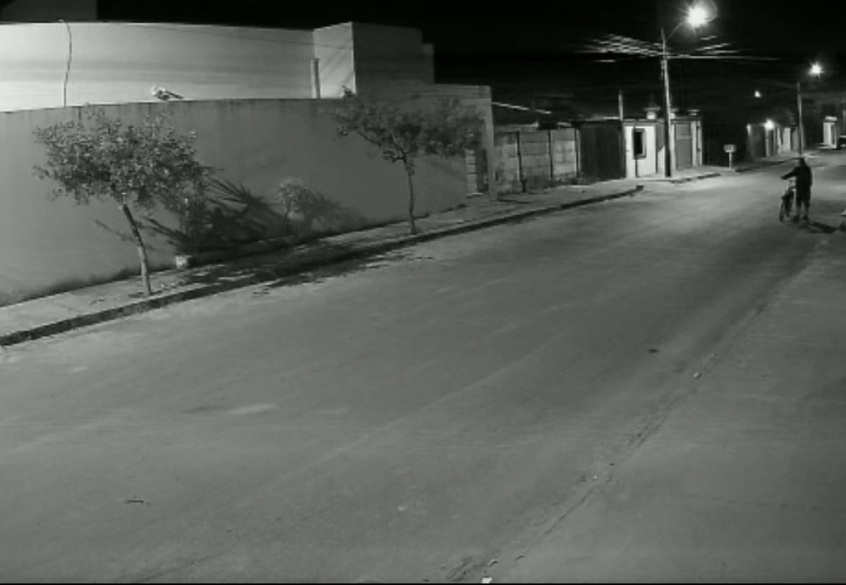 Câmeras de segurança no local, registraram a ação dos criminosos, sendo possível visualizar a vítima de 48 anos deslocando pelo referido endereço, empurrando uma bicicleta e com uma mochila cor preta nas costas, momento em que foi abordado, por três indivíduos, sendo que o primeiro indivíduo ficou vigiando, um dos autores agarrou a vítima pelo pescoço jogando-a no chão onde um dos autores desferiu vários chutes na vítima.