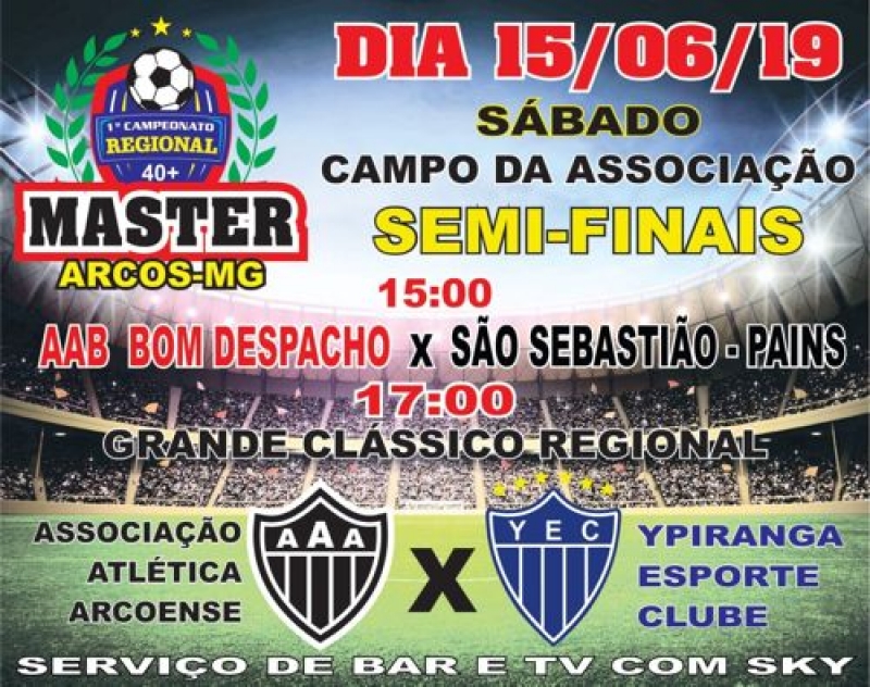 Em caso de empate no tempo normal, haverá cobrança de penaltys e somente um time de Arcos passará para a grande Final do Campeonato Regional Master +40.