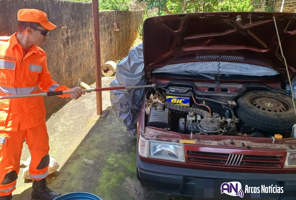 Militares do Corpo de Bombeiro do Posto Avançado de Arcos foram acionados na manhã deste domingo (05) para resgatar um gambá no motor de um veículo.