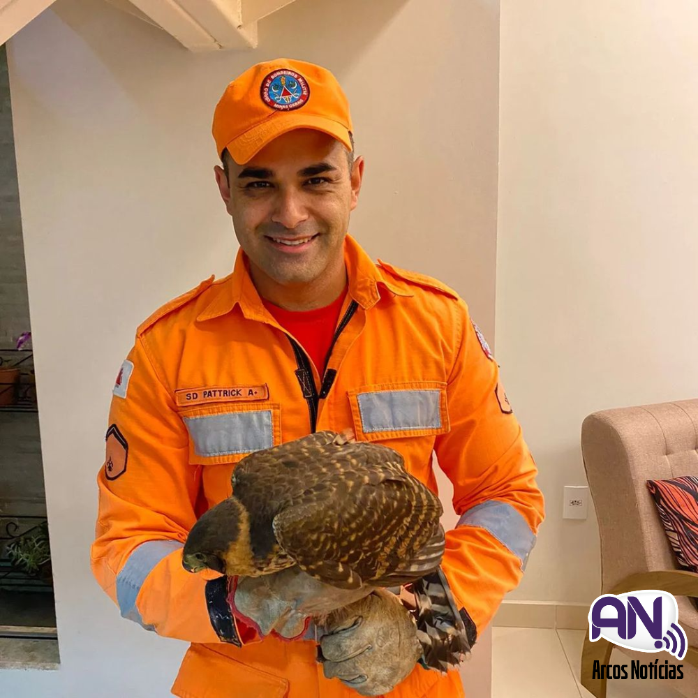 No início da noite desta quinta-feira (25), os militares do Posto Avançado do Corpo de Bombeiros Militar de Arcos foram acionados para realizar o salvamento de um gavião preso em uma claraboia de uma residência no Bairro Buritis aqui em Arcos.