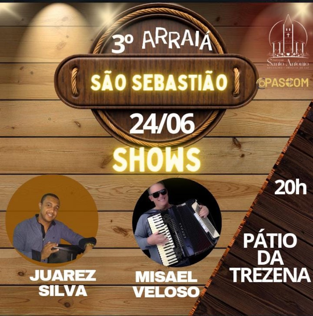 Neste sábado (24) a partir das 20 horas acontece o "3º Arraiá de São Sebastião" no Pátio da Trezena de Santo Antônio em Arcos.