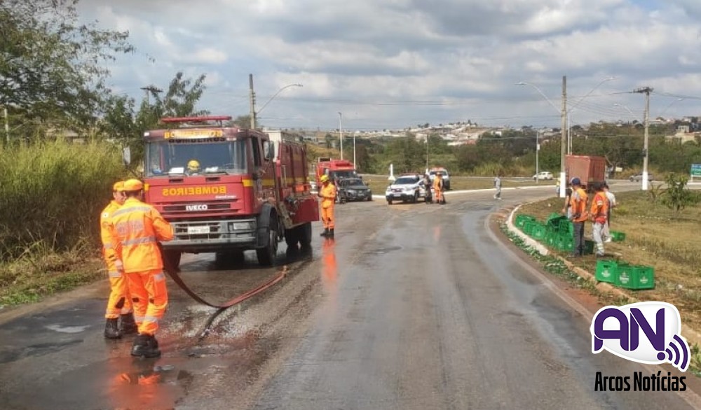 Um motociclista de 28 anos ficou ferido em acidente que ocorreu no momento em que engradados de cerveja caíram de um caminhão na BR-352, em Pará de Minas, na manhã desta segunda-feira (31).