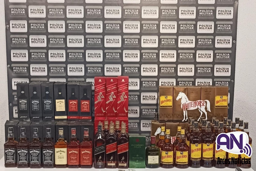 Um homem de 35 anos foi preso neste sábado (9) com mais de 100 garrafas de uísque falsificado e porções de drogas. A prisão ocorreu em uma operação de rotina da Polícia Militar Rodoviária (PMRv) na MG-050, em Carmo do Cajuru.