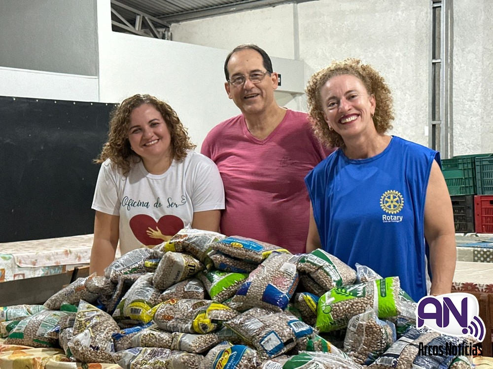 O alimento será repassado a famílias assistidas pela entidade religiosa. Na entrega, o Rotary foi representado pela sua integrante Márcia Palhares, a psicóloga Luciane Saporett representou a Oficina do Ser.
