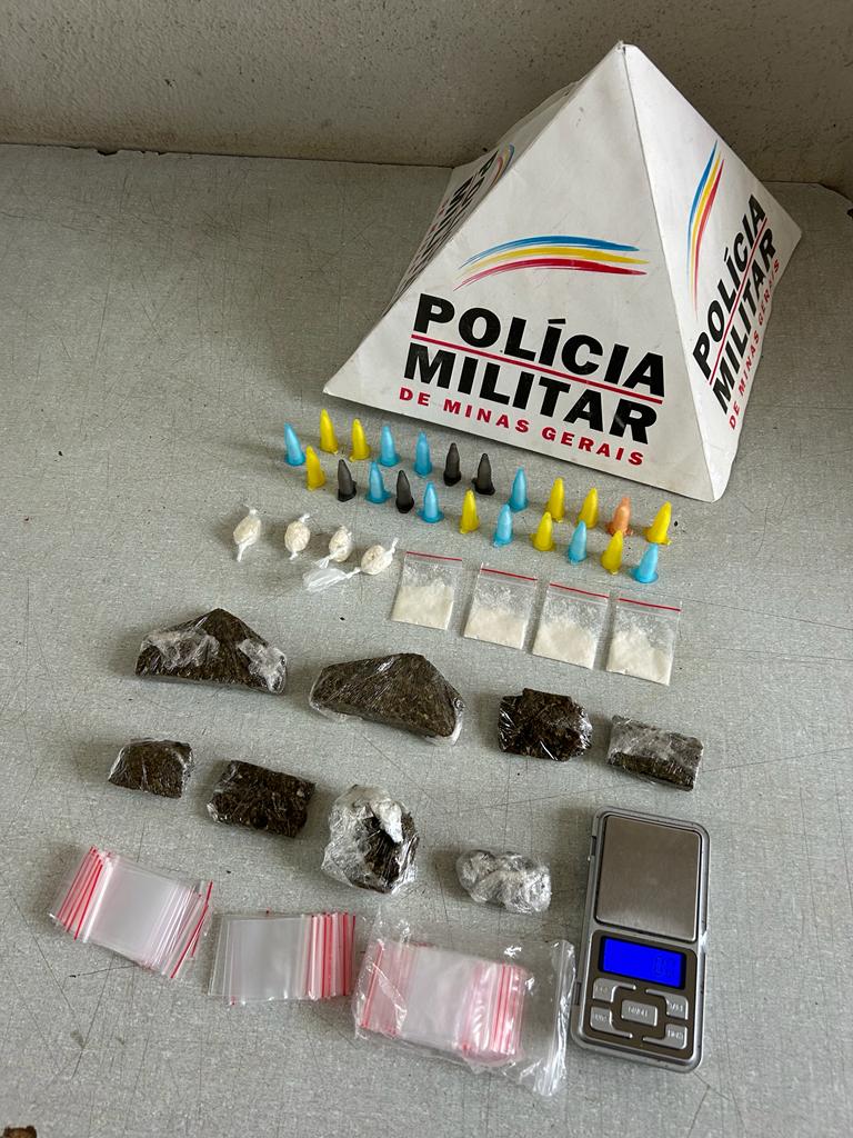 A ocorrência terminou com a recuperação do veículo furtado, prisão dos envolvidos e apreensão de: 23 pinos e 08 porções de cocaína, 08 tabletes de maconha e uma balança de precisão.
