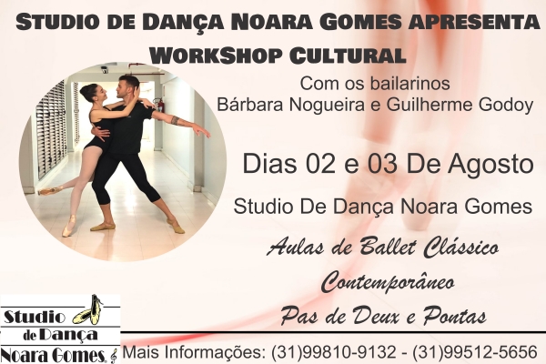 Nos dias 02 e 03 de agosto, no Studio de Dança Noara Gomes, em Arcos, haverá um workshop especial com aulas de ballet clássico, contemporâneo, técnicas em pontas e pas de deux.