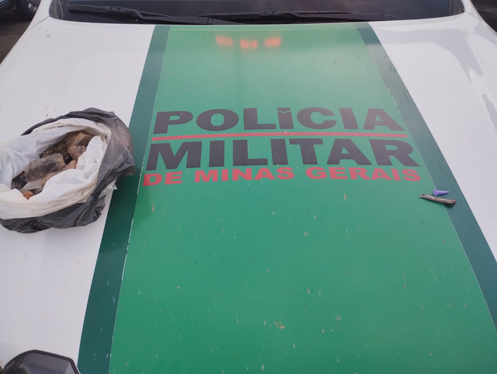 Ainda segundo os Militares, os suspeitos portavam picaretas, pás e sacos plásticos contendo pedras de quartzo extraídas ilegalmente naquela propriedade.